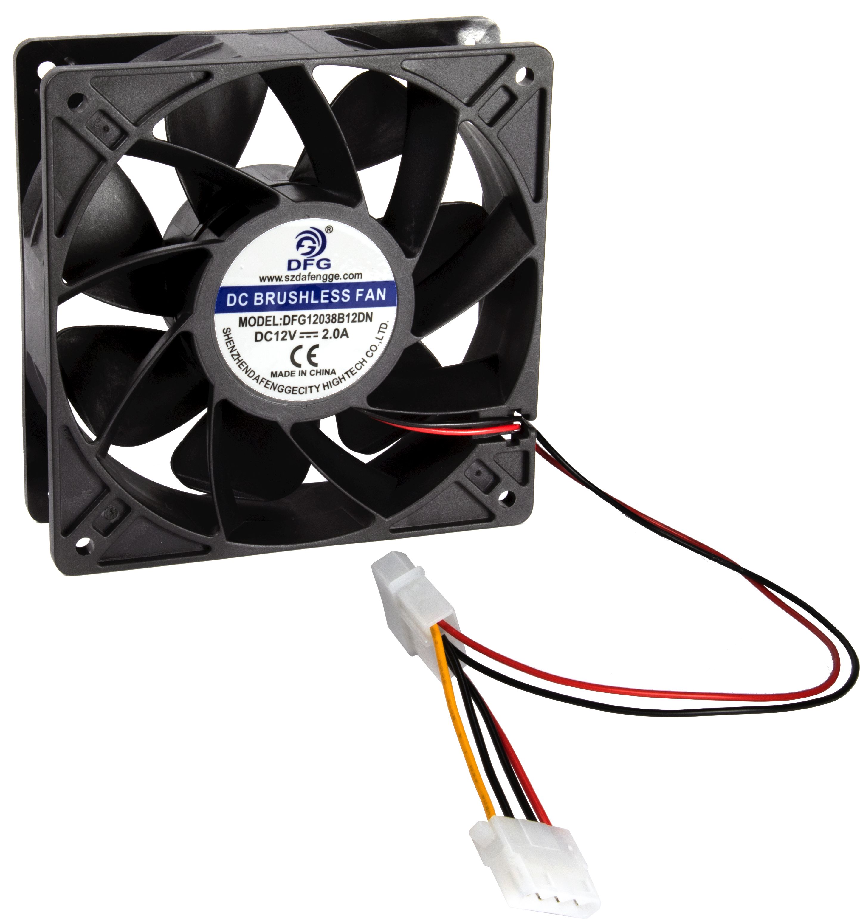 Der DFG12038B12DN ist ein 120mm Lüfter mit einem hohen statischen Luftdruck von 31,10mm mm-H2O und einem Luftdurchsatz von 332,50 cbm/h bei 5500 U/min.