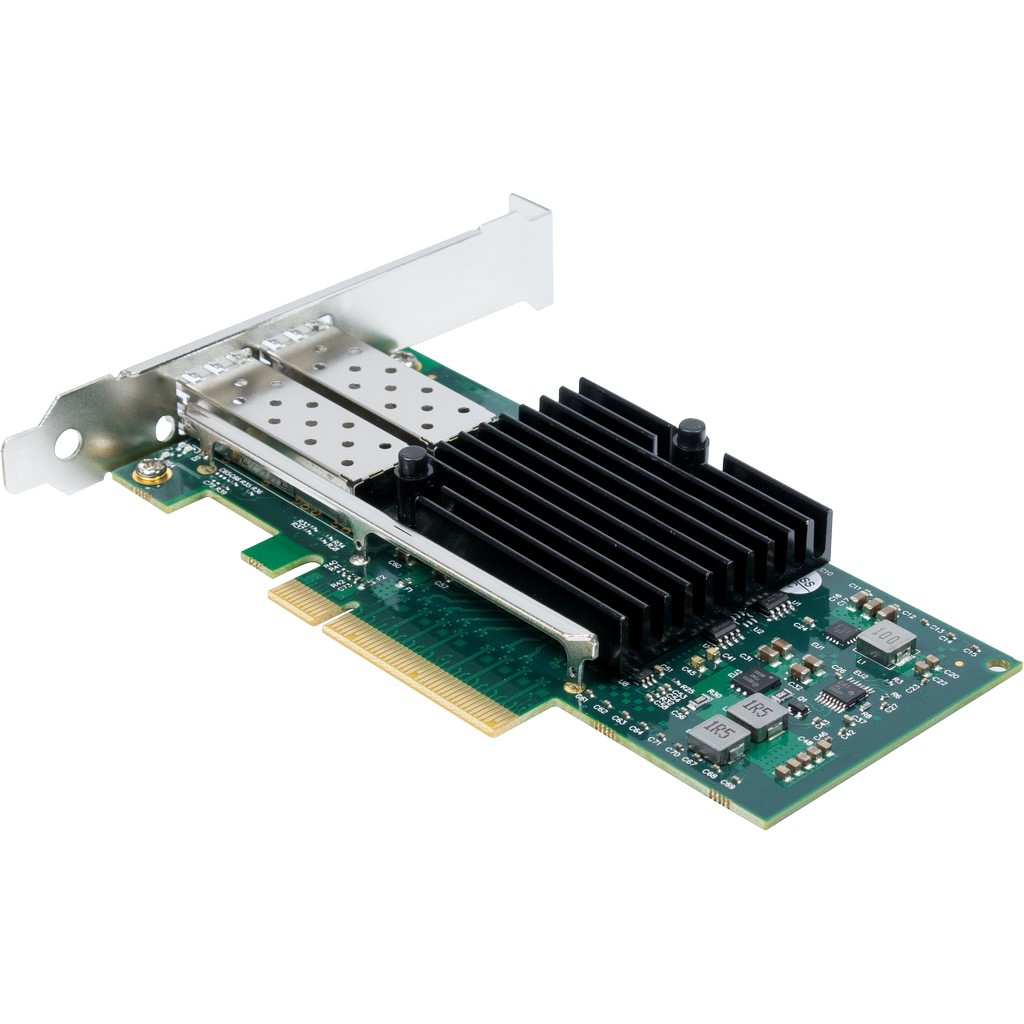 Der verbaute Intel® Chipsatz 82599 bietet hervorragende Leistung und sorgt für schnellen Datendurchsatz. Zudem wird durch die ST-723 der Hauptprozessor weiter entlastet, sodass der Netzwerktransfer nicht mehr so stark den Hauptprozessor beansprucht, was oft beim Einsatz von normalen Netzwerkkarten in einem Serverumfeld der Fall ist. Der Anschluss erfolgt durch den schnellen SFP+ Standard.