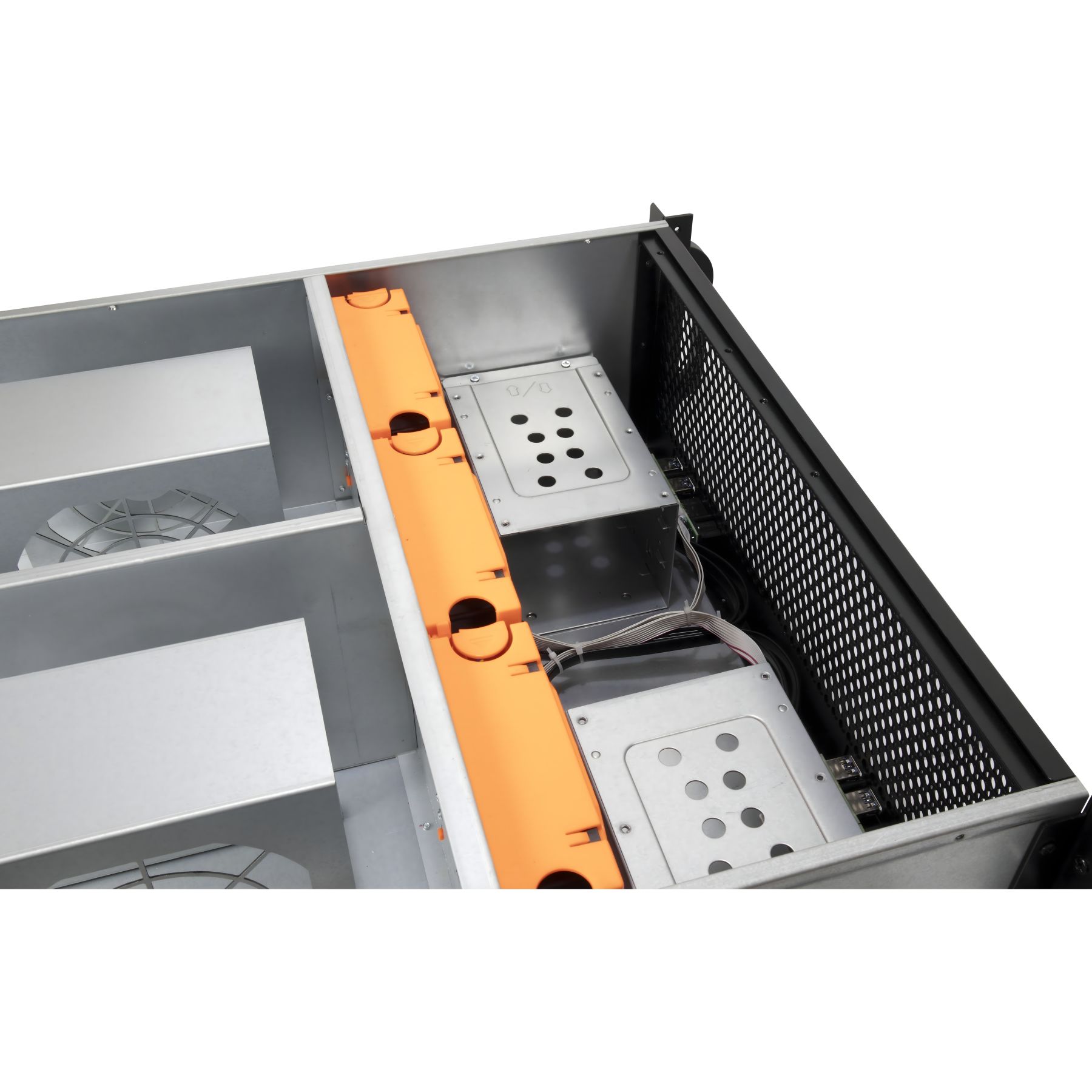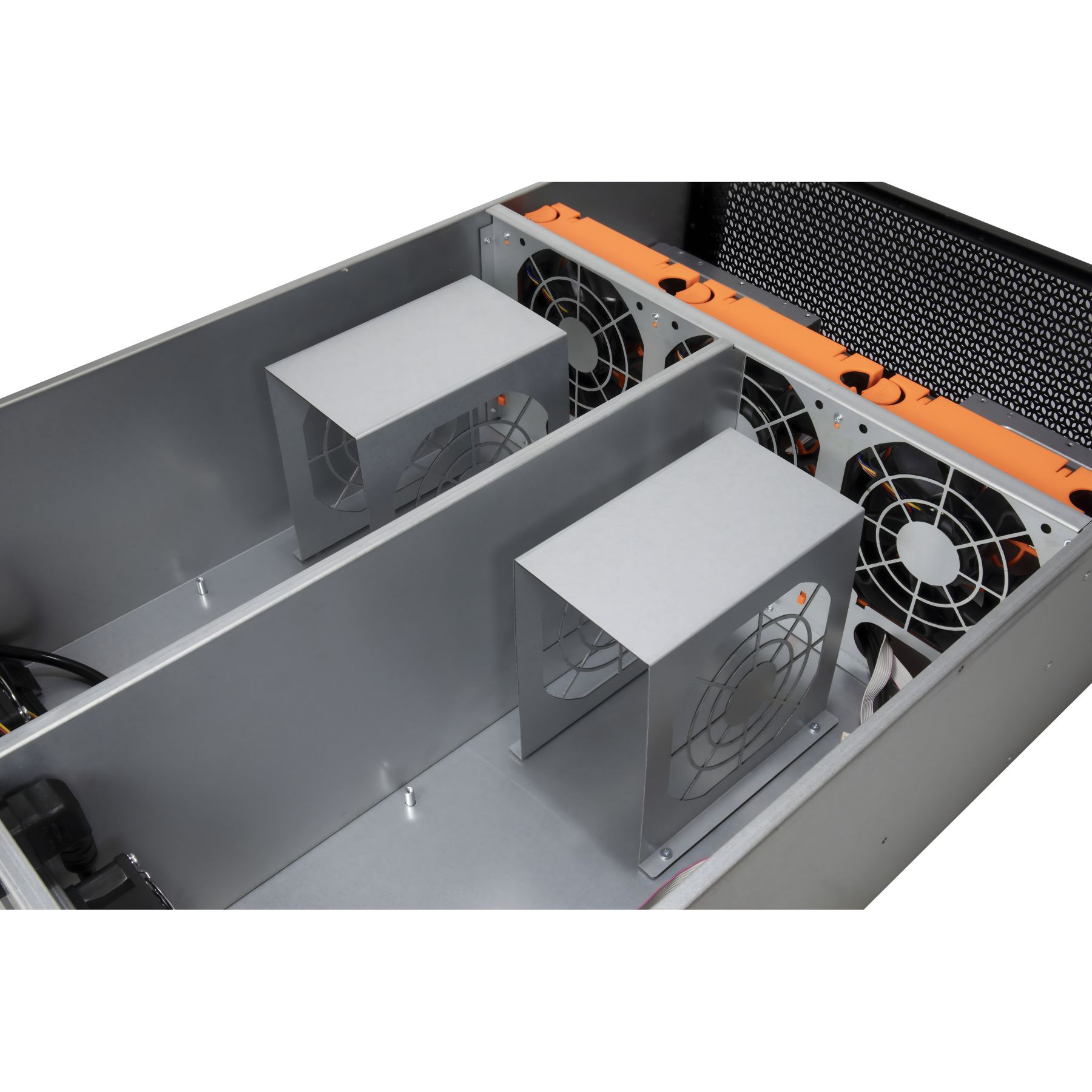 The robust steel housing ensures high stability and durability in 24/7 operation, whilst the standardised 4U rack format allows for easy integration into 19-inch server racks.
